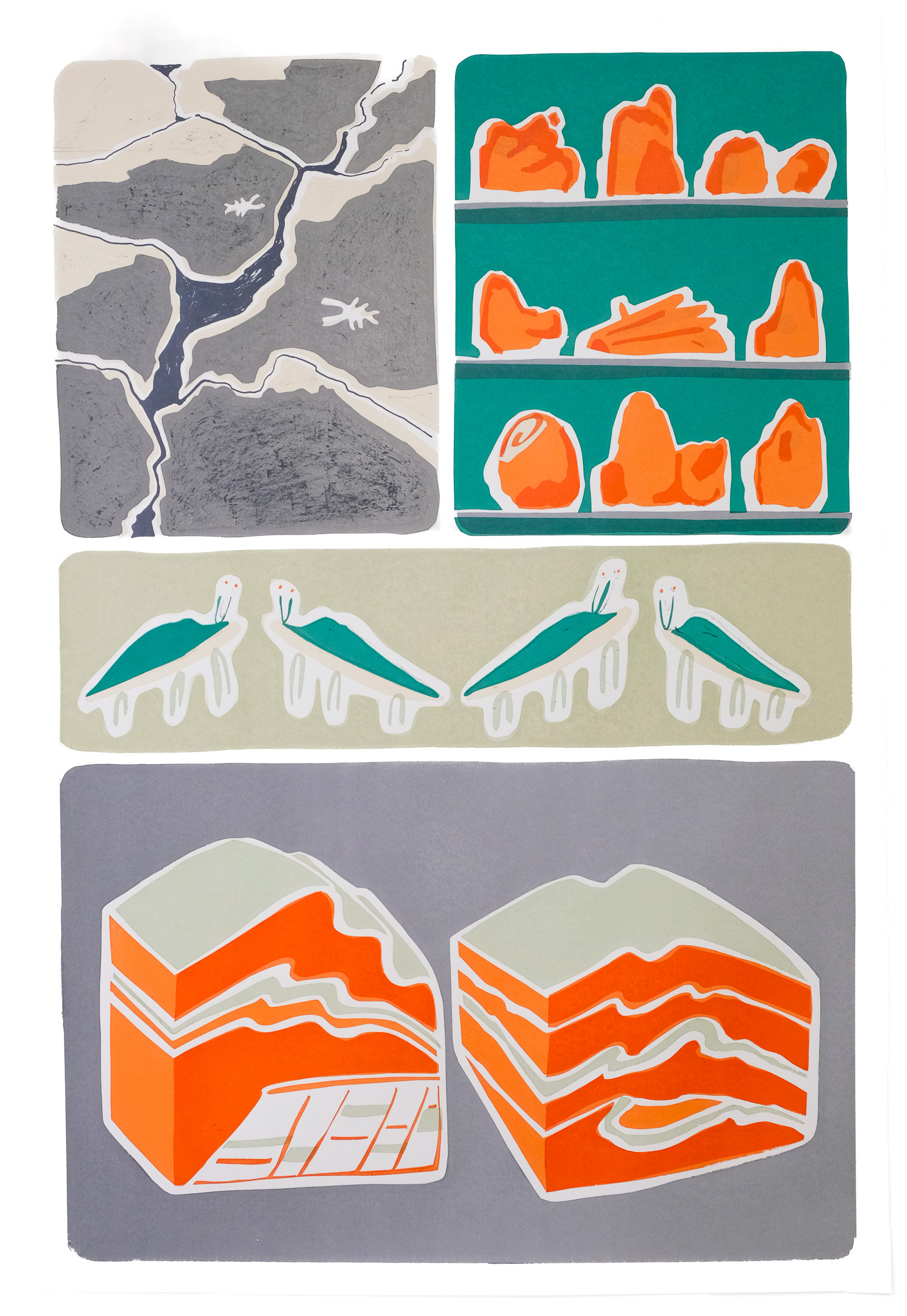 Inflating / Deflating Paper Sculpture, Painted Floor, Ceramic Sculptures, Machine